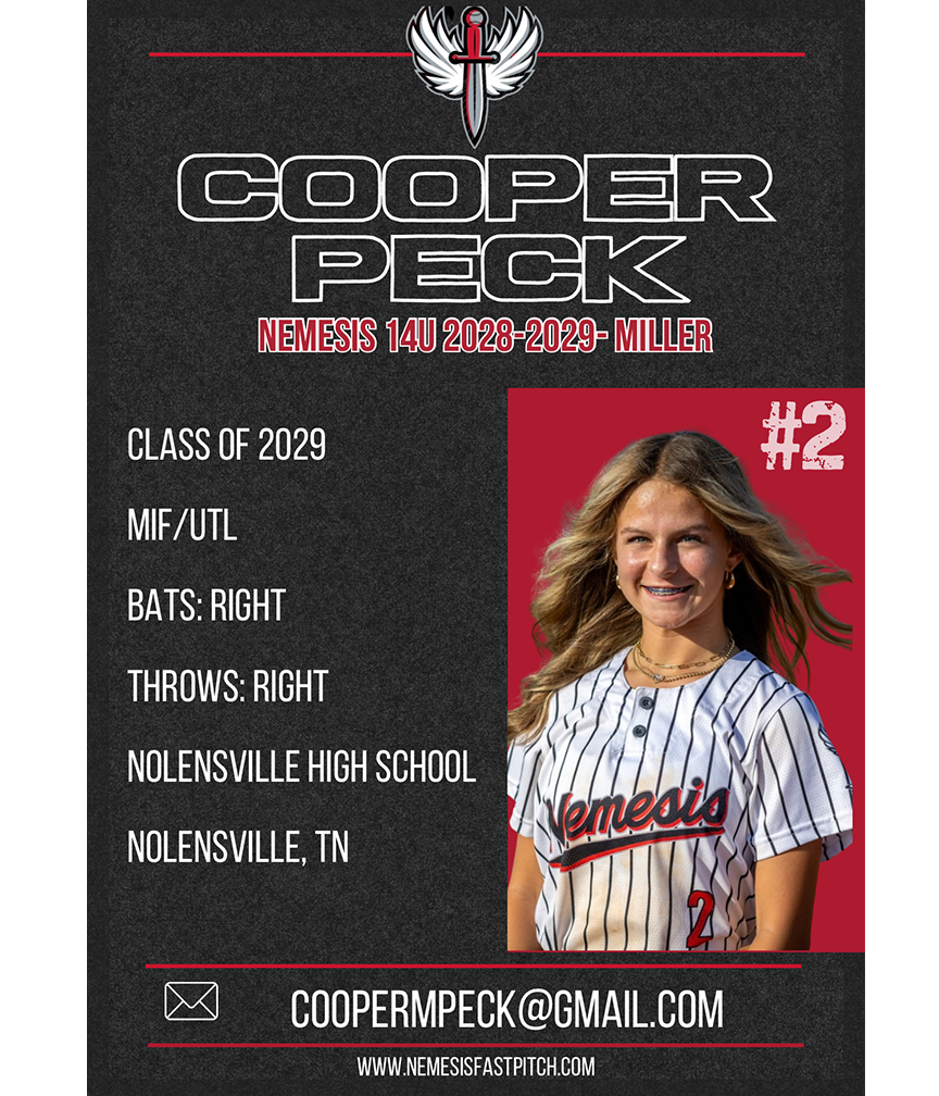 She’s the starting shortstop for Nemesis Red 2010 and can hop over to 2B when needed. Her quick, instinctive glove work and natural athletic abilities make all 5’ feet of her a presence on the field. Coop is a force on the base paths as well, and is currently leading her team with the most stolen bases.